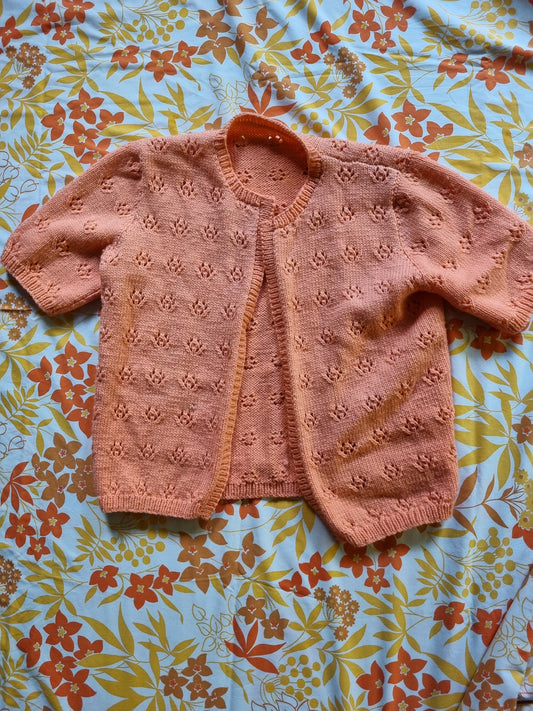 Short-Sleeved Cardigan - Handknit - Orange (M)