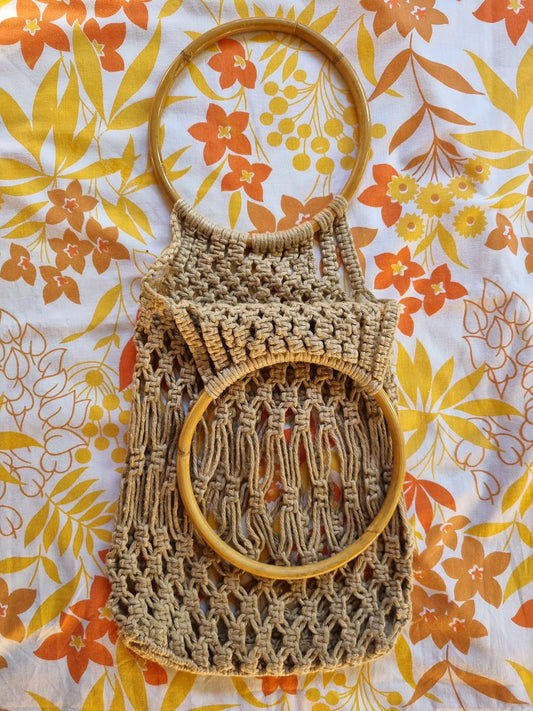 Macrame Handbag with Cane Handles