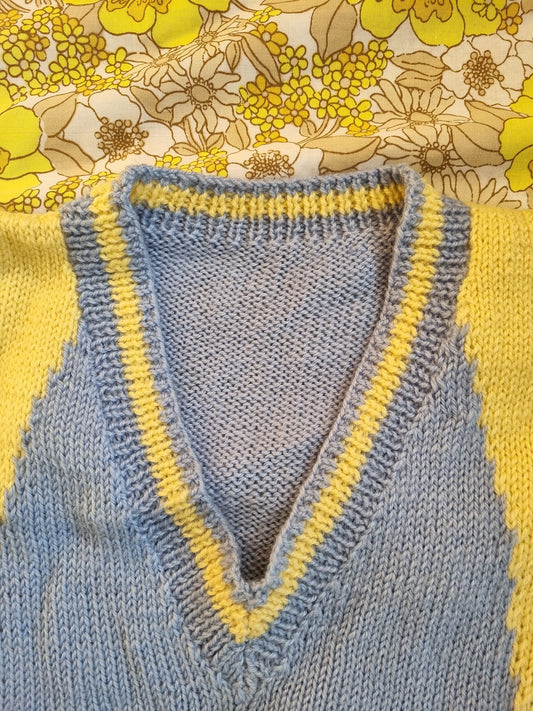 Handknit Wool Vest - Yellow Diamonds (XL)