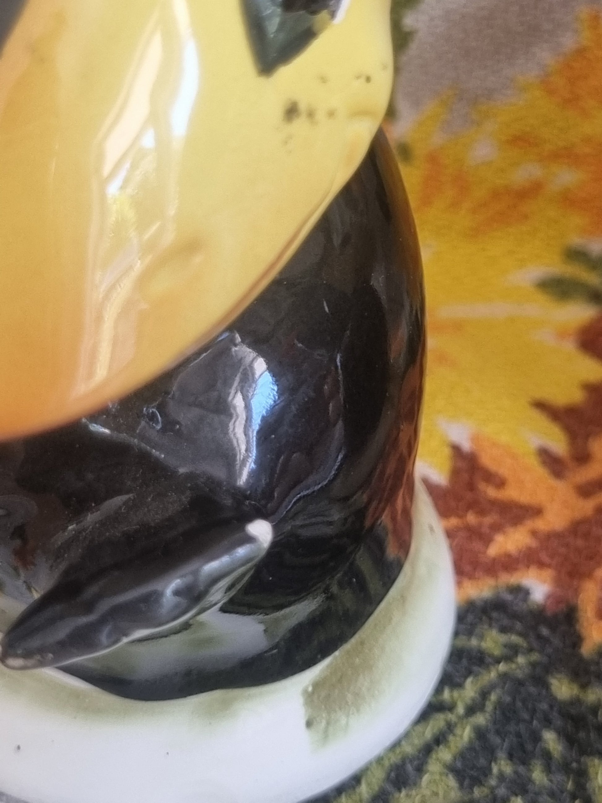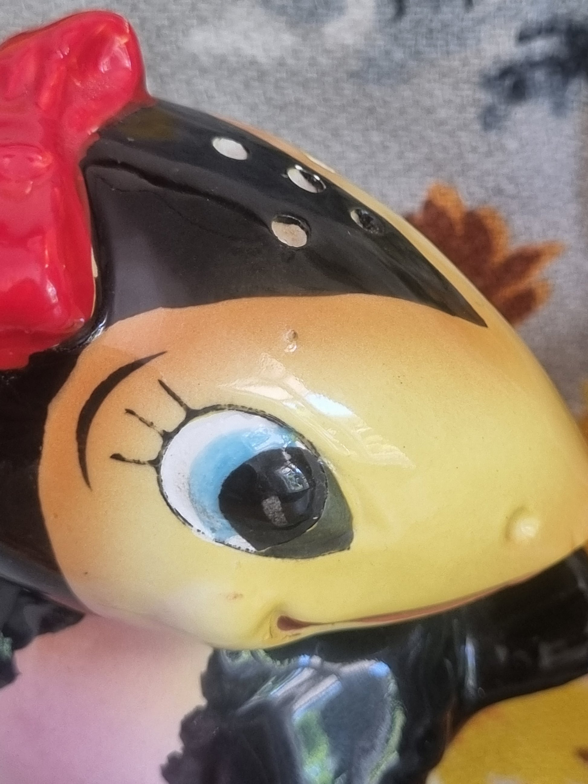 An adorable set of vintage toucan salt and pepper shakers, made in Japan. These are in good vintage condition, but there are a couple of the tiniest nibbles - I have tried to photograph this as best as I could. They measure approximately 8 cm tall.